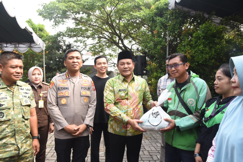 KOMINFO,Sidoarjo- 1.000 paket Sembako dibagikan dalam Bakti Sosial/Baksos yang digelar Yayasan Mawar Sharon Peduli (MSP) bersama Forkopimda Sidoarjo, Kamis, (11/12). Selain Sembako, 1.000 porsi makan gratis juga disediakan dalam Baksos yang digelar di Perumahan Argent Park Kelurahan Sidoklumpuk Sidoarjo tersebut. Selain masyarakat sekitar, pengemudi Ojek Online/Ojol juga ikut menerima Sembako itu. Penyerahan Sembako dilakukan Forkopimda Sidoarjo. Selain Bupati Sidoarjo H. Subandi, ada bersama Kapolresta Sidoarjo Kombes Pol Christian Tobing, Dandim 0816/Sidoarjo Letkol Czi Shobirin Setio Utomo serta Kepala BNN Sidoarjo Kombes Pol Gatot Soegeng Soesanto dan Pembina Yayasan MSP Pdt. David Lauli.Bupati Sidoarjo H. Subandi menyampaikan ucapan terima kasih kepada Yayasan Mawar Sharon Peduli dan Kepolisian Republik Indonesia yang telah menyelenggarakan kegiatan bakti sosial di wilayahnya. Menurutnya kegiatan Baksos seperti ini menunjukkan kepedulian MSP dan Polri terhadap masyarakat yang membutuhkan.“Saya menyampaikan penghargaan dan terima kasih kepada Yayasan Mawar Sharon Peduli dan Kepolisian Republik Indonesia yang telah menyelenggarakan kegiatan bakti sosial di Kabupaten Sidoarjo,” ucapnya. Bupati H. Subandi mengatakan pembagian paket sembako dan makanan gratis bukan sekadar bantuan materi. Namun hal seperti ini adalah wujud sinergi sosial antara Yayasan MSP dan Polri untuk meringankan beban masyarakat. Lewat Baksos kali ini lanjut H. Subandi, juga akan memperkuat rasa kebersamaan dan menumbuhkan kepedulian antarwarga. Diharapkannya bantuan tersebut dapat memberikan manfaat langsung bagi keluarga yang sedang kesulitan maupun Lansia serta warga rentan lainnya.“Dukungan dan kerja sama ini memperlihatkan bahwa ketika elemen masyarakat bersatu, dampak positifnya terasa luas dan cepat,” ucapnya.Untuk itu dalam kesempatan tersebut ia mengajak semua untuk menjaga kebersamaan dan saling membantu. Disampaikannnya bahwa kepedulian kecil dari banyak pihak akan menjadi suatu kekuatan besar bagi komunitas dalam menebar kebaikan. Dikatakannya Pemerintah Kabupaten Sidoarjo juga berkomitmen untuk terus mendukung inisiatif kemanusiaan dan program sosial yang berpihak pada masyarakat. “Kami akan memperkuat koordinasi dengan organisasi masyarakat, lembaga sosial, dan aparat keamanan untuk memperluas jangkauan bantuan dan meningkatkan efektivitas penyaluran bantuan. Semoga kegiatan ini membawa manfaat nyata dan menjadi inspirasi bagi upaya-upaya kebaikan berikutnya,” ucapnya.Pembina Yayasan MSP Pdt. David Lauli juga mengucapkan terima kasih kepada Forkopimda Sidoarjo atas dukungan penyelenggaraan Baksos kali ini. Dikatakannya kegiatan sosial seperti ini adalah wujud komitmen bersama akan kepedulian kepada masyarakat yang membutuhkan. “Kegiatan ini juga akan menumbuhkan semangat melayani bagi kota yang kita cintai, kota Sidoarjo,” ucapnya.Pdt. David mengatakan pembangunan sosial tidak dapat dikerjakan sendiri. Oleh karenanya dibutuhkan kolaborasi bersama antara pemerintah daerah, aparat keamanan serta tokoh masyarakat dan para relawan.“Melalui kegiatan ini kami berharap kebaikan yang dibagikan dapat menjadi berkah danmejadikan suka cita bagi masyarakat,” ucapnya. Git/mas
