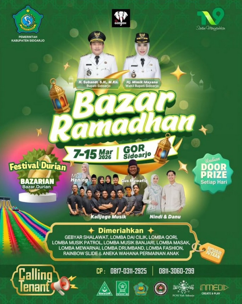 Untuk para pelaku usaha, kami membuka kesempatan menjadi tenant dan meramaikan bazar terbesar Ramadan di Sidoarjo.