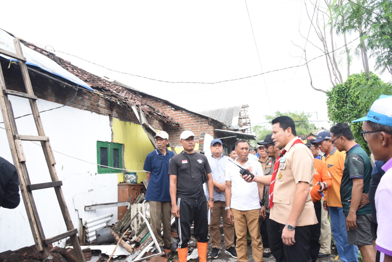 KOMINFO, Sidoarjo - Angin puting beliung menerjang dua desa di Kecamatan Buduran Sabtu siang kemarin, (21/12). Akibatnya puluhan rumah di Desa Prasung dan Desa Dukuh Tengah Kecamatan Buduran mengalami kerusakan. Tercatat 34 rumah warga di Desa Prasung dan 25 rumah warga di Desa Dukuh Tengah rusak. Sebagaian besar kerusakan terjadi pada atap rumah warga yang memakai atap galvalum. Terjangan angin puting beliung itu terjadi pukul 14.00 WIB. Pagi tadi, Minggu, (21/12), Bupati Sidoarjo H. Subandi melihat kondisi warga terdampak bencana angin puting beliung tersebut. Bupati H. Subandi mengatakan penanganan bencana angin puting beliung akan dilakukan semaksimal mungkin. Untuk sementara ini, atap rumah warga yang rusak dilindungi dengan terpal. Besok perbaikan dengan material keras akan dikerjakan. Anggaran Belanja Tidak Terduga/BTT akan digunakan untuk menangani bencana kali ini.“Nanti akan kita bantu dengan baja ringan, pakai galvalum, atapnya nanti diganti asbes kluntung, besok sudah mulai bekerja,” ucapnya.H. Subandi meminta gotong royong warga untuk memperbaiki rumah warga besok. Dirinya juga akan mengerahkan petugas Satpol PP serta Tagana untuk perbaikannya. Ia ingin penanganan dampak bencana puting beliung itu segera selesai. Oleh karenanya ia meminta semua pihak dapat terlibat. “Kita akan gerakkan semua biar cepat selesai, pak kepada desa minta gotong royong warga tetap dilaksanakan,”pintanya.Agus Salim warga Desa Dukuh Tengah menceritakan angin puting beliung berjalan dari arah Utara sebelum menerjang rumahnya. Kejadiannya begitu mendadak. Tanpa adanya hujan namun langit mendung pekat. Saat itu dirinya berada diteras rumah saat angin puting beliung memporak porandakan rumahnya sekitar jam dua siang. Kerasnya sapuan angin itu merusak sebagaian atap rumahnya.“Angin saja dari Utara membawa terbang seng,” ucap Agus warga RT 12 RW 5 itu. Git/mas