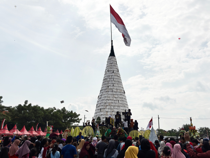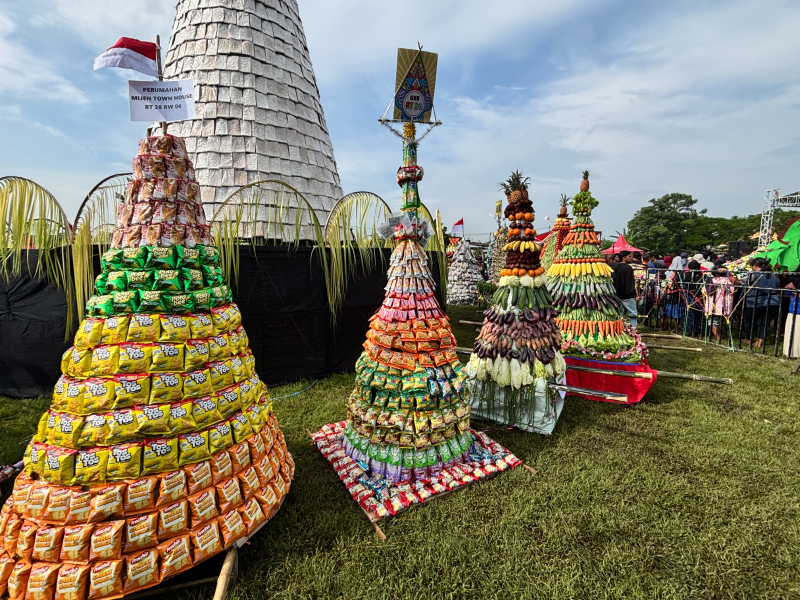 KOMINFO, Sidoarjo — Peringatan Hari Jadi Kabupaten Sidoarjo (Harjasda) ke-167 tahun 2026 diwarnai beragam kegiatan sosio-kultural yang sarat nilai tradisi. Salah satunya tradisi ruwat desa atau sedekah bumi yang kembali digelar meriah oleh masyarakat Desa Sedengan Mijen, Kecamatan Krian, Kabupaten Sidoarjo, menjelang datangnya bulan suci Ramadhan.Ikon utama dalam kegiatan ini adalah tumpeng tempe raksasa setinggi sekitar 13–14 meter yang menjadi simbol rasa syukur sekaligus identitas Sedengan Mijen sebagai desa sentra penghasil tempe. Tumpeng tersebut dibuat dari kurang lebih tiga kuintal kedelai dan disusun secara gotong royong oleh warga.Usai didoakan, ribuan warga yang sejak pagi memadati Lapangan Desa Sedengan Mijen langsung berebut potongan tempe. Suasana penuh kegembiraan tampak mewarnai prosesi tersebut, karena tempe yang dibagikan diyakini membawa berkah bagi siapa saja yang mendapatkannya.Tidak hanya sedekah tumpeng tempe raksasa, kegiatan ini juga dimeriahkan dengan 31 tumpeng hasil bumi yang dibawa masing-masing RT. Beragam hasil pertanian, perkebunan, hingga perikanan tersaji dan turut diperebutkan warga, menambah semarak kebersamaan.Camat Krian, Nawari, yang hadir mewakili Bupati Sidoarjo, menyampaikan apresiasi atas kekompakan dan partisipasi masyarakat dalam menjaga tradisi budaya lokal.“Atas nama Pemerintah Kabupaten Sidoarjo, kami menyampaikan terima kasih dan apresiasi. Tradisi seperti ini sangat positif karena tidak hanya melestarikan budaya, tetapi juga berpotensi menjadi daya tarik wisata daerah,” ujar Nawari saat ditemui di lokasi kegiatan, Minggu (1/2/2026).Ia menambahkan, apabila terus dilestarikan, kegiatan budaya seperti sedekah tumpeng tempe dapat masuk dalam agenda wisata daerah.Sementara itu, Kepala Desa Sedengan Mijen, Hasanuddin, menegaskan bahwa sedekah tumpeng tempe bukan sekadar agenda tahunan, melainkan wujud rasa syukur dan kebersamaan warga.“Alhamdulillah seluruh rangkaian ruwat desa berjalan lancar. Ini adalah bentuk syukur masyarakat sekaligus sarana mempererat persatuan. Kami mengucapkan terima kasih kepada panitia dan seluruh pihak yang turut bekerja keras menyukseskan acara ini,” ungkapnya.Rangkaian ruwat desa telah dilaksanakan beberapa hari sebelumnya, mulai dari istighosah, barikan Khotmil Qur’an, pagelaran wayang kulit, hingga pasar jajanan tradisional. Puncak kegiatan ditandai dengan prosesi doa bersama dan perebutan tumpeng di lapangan desa. Antusiasme warga terlihat hingga acara berakhir.Tradisi tumpeng tempe raksasa ini pun terus menjadi agenda tahunan yang dinanti masyarakat Sedengan Mijen, sekaligus menjadi bagian dari kekayaan budaya Kabupaten Sidoarjo. (Mar)